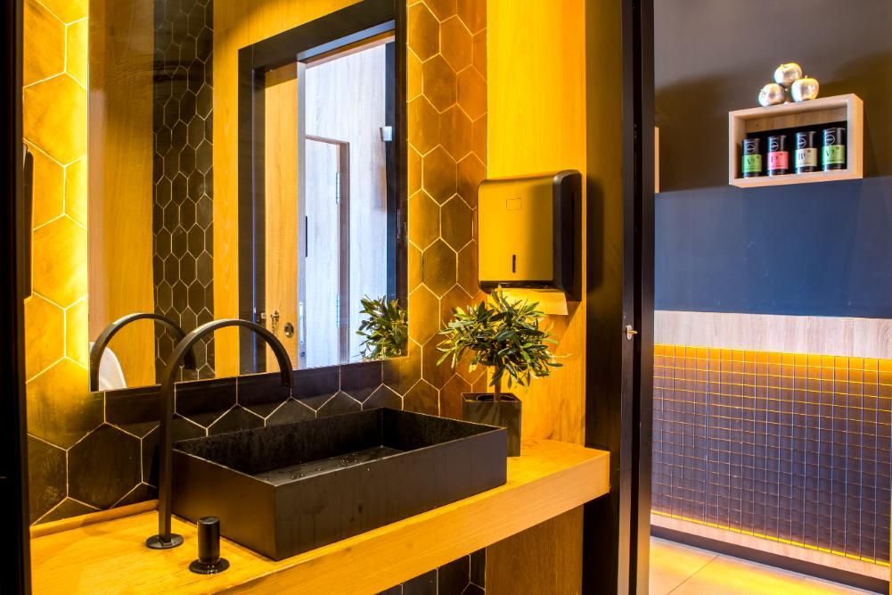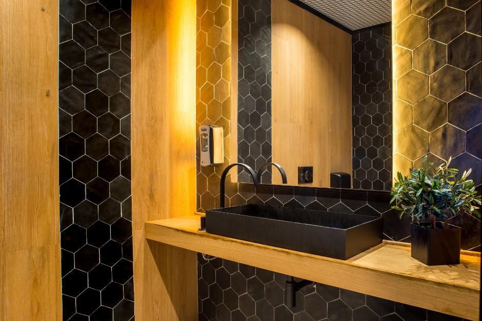 La mezcla de materiales como el mármol negro marquina y los tonos cálidos de la madera hacen de este un proyecto equilibrado y moderno.